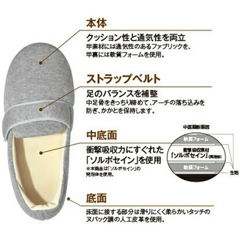 肌馴染みの良いジャージー生地を使ったシンプルなデザイン。ソルボフォームを使ったインソールで足当たり柔らか。