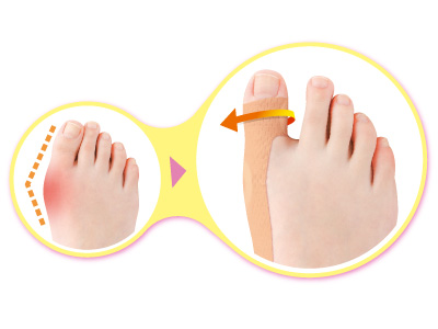 親指を開き指の曲がりを補整し、靴に当たる足指の衝撃を緩和するので、外出中でも快適に過ごすことができる商品です。