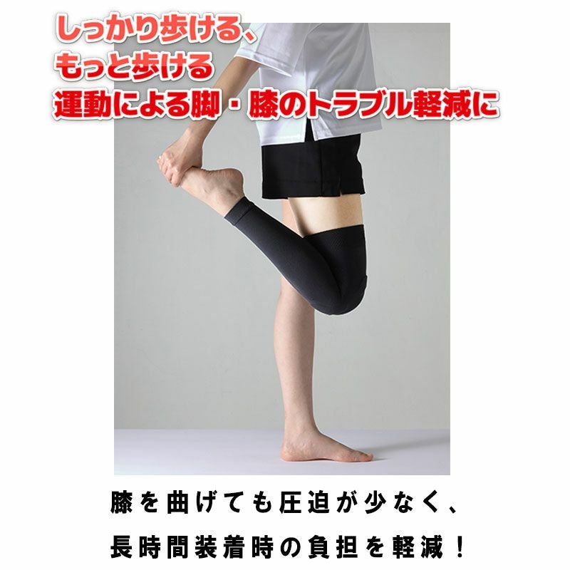 側面補強用編みが筋肉やじん帯をしっかりサポートしテーピング効果を発揮し脚を前に出しやすくします。