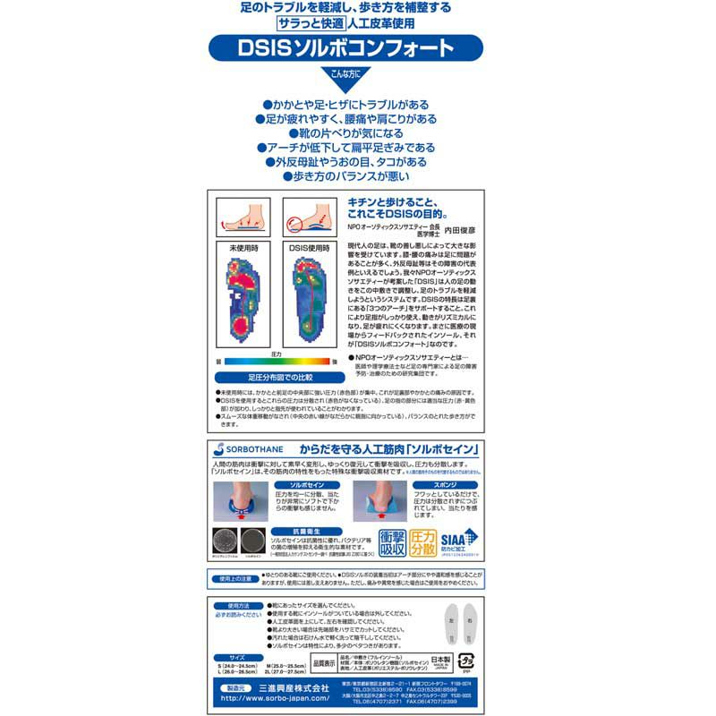 ソルボDSISインソールは足裏にある3つのアーチサポートを目的にした扁平足に最適なインソールです。扁平足は足裏にある3つのアーチが崩れて機能しなくなっている状態です。 扁平足は、歩き疲れたり、足に痛みが生じたりします。 扁平足が進むと外反母趾の指の曲がり、タコ・ウオノメが痛いなどが生じることになります。 DSISは足裏にある3つのアーチサポートを目的にしたインソールです。 DSISインソールは商品名にDSISが含まれDSISロゴが表示されています。
