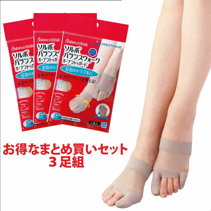 履くタイプの薄手生地サポーター つま先にゆとりのある靴が履けます ソルボ足指間パッドは指に沿った形なので優しくフィット