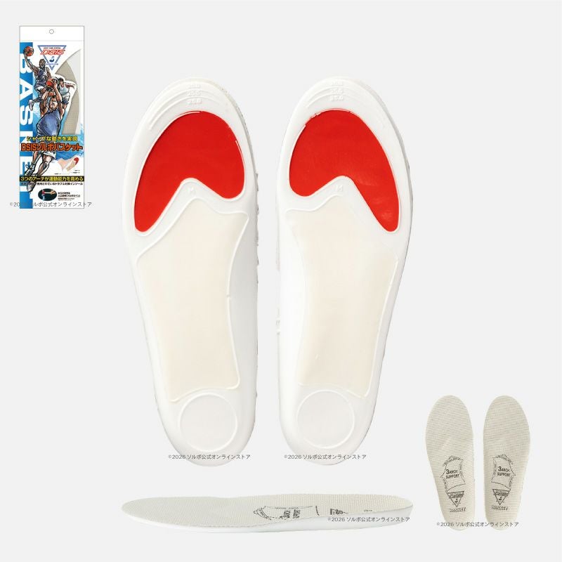 衝撃吸収素材ソルボセイン®をソルボトゥパッドに配置しました。衝撃を吸収し、ネジレやブレを和らげます。DSIS3軸ソルボアーチパッドが土踏まずを支え足の機能を高めます。本体は高弾性軽量ポリウレタン発泡素材を使用し、前足ウェッジが親指の踏み込みを良くします。後足ウェッジが外方向への動きを抑えます。ヒールカップが安定性を生みフットワークを支えます。バスケット特有の衝撃の強いジャンプ着地時や、ストップ時に起こりやすい足のトラブルを軽減します。 足に触れる表面は綿ラック生地を採用し、汗に強く耐久性に優れています。