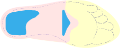 | 形状 | ![]() 平らな形状ハーフインソール 足の3つのアーチをサポート |