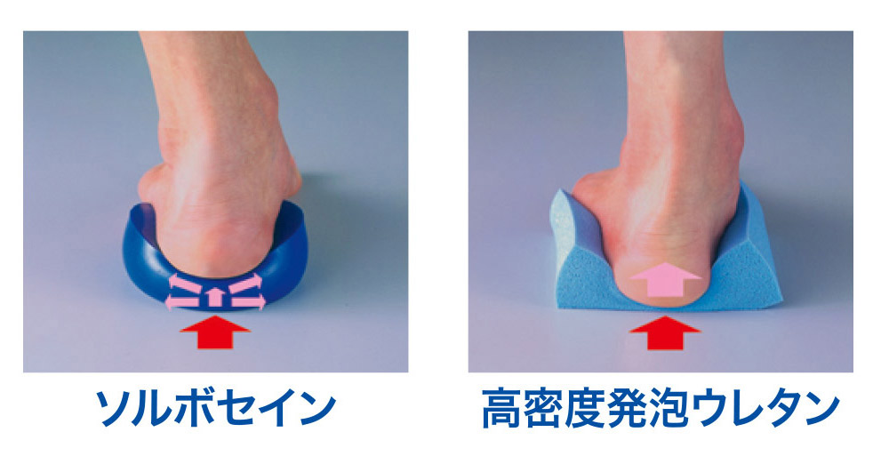 当ストアで販売しているソルボインソールにも、オーダーメイドで使われているパッドの素材と同じソルボセイン®が使用されています