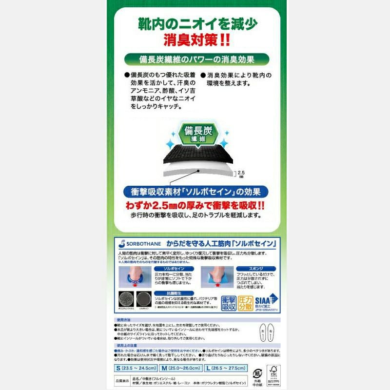 ソルボ衝撃吸収+炭インソール 消臭・抗菌
