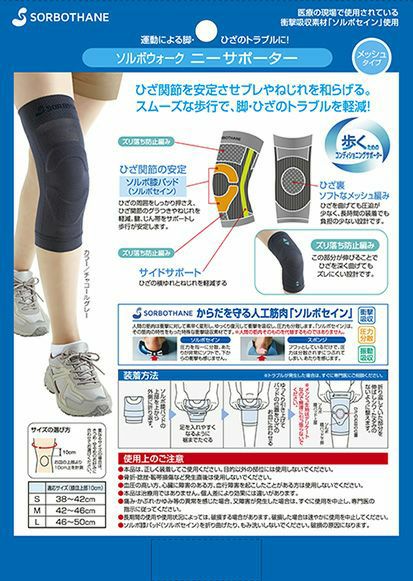お得な2枚組セット!膝を曲げてもズレにくく、ソルボ膝パッドがねじれを抑え、パワーベルトのテーピング効果で脚を前に出しやすくなる S(38~42cm) M(42~46cm) L(46~50cm)