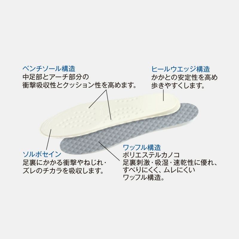 足、腰、ひざのトラブルの原因は 足への負担が原因のことが多いです!衝撃吸収素材ソルボセイン®を最大量使用しました。