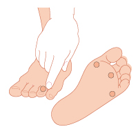 新しい靴や靴下など、慣れないうちに履いたときに、普段は触れない部分が摩擦し、水ぶくれを起こすことがあります。 あらかじめ、靴ずれなどを起こしやすい部分に保護パッドを貼って予防したり、 出来てしまったときは、小さな穴をあけて水をぬき、清潔に消毒した後に保護パッドを使用します。