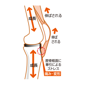 成長期に多い脛骨(けいこつ)と膝蓋靱帯(しつがいじんたい)の接合部のトラブルに