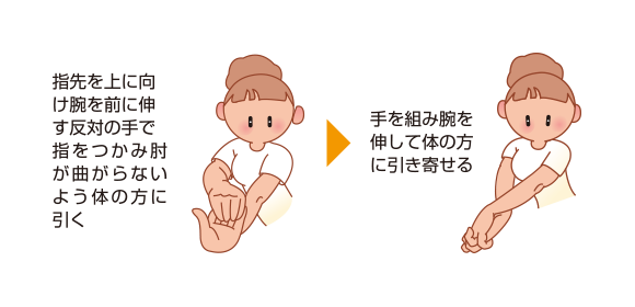 手首に痛みとハレが起こる腱鞘炎は、ラケットを使用するスポーツで、起こりやすく、ストレッチ運動は特に大切です。