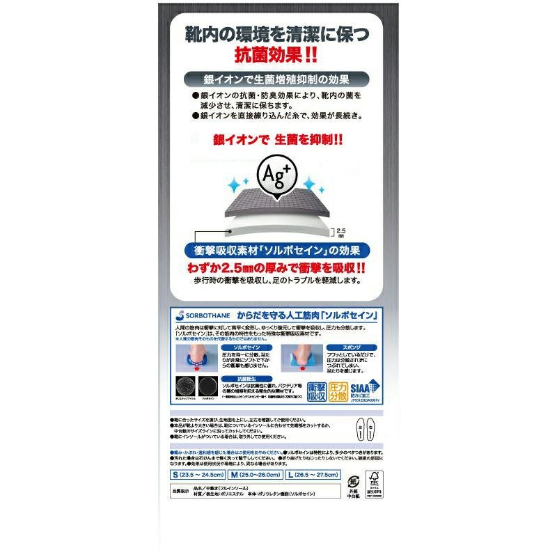 ソルボ衝撃吸収+銀インソール 清潔・抗菌